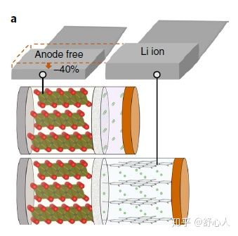 這是當(dāng)年那篇paper上的示意圖,b是anode-free電池的示意圖。